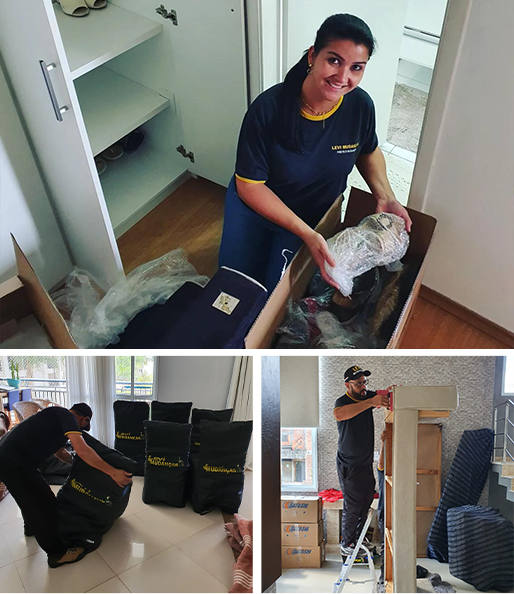 Oferecemos o serviço de desmontagem e montagem de móveis, encaixotamento de todos utensílios, cabideiros, capas personalizadas e etc.